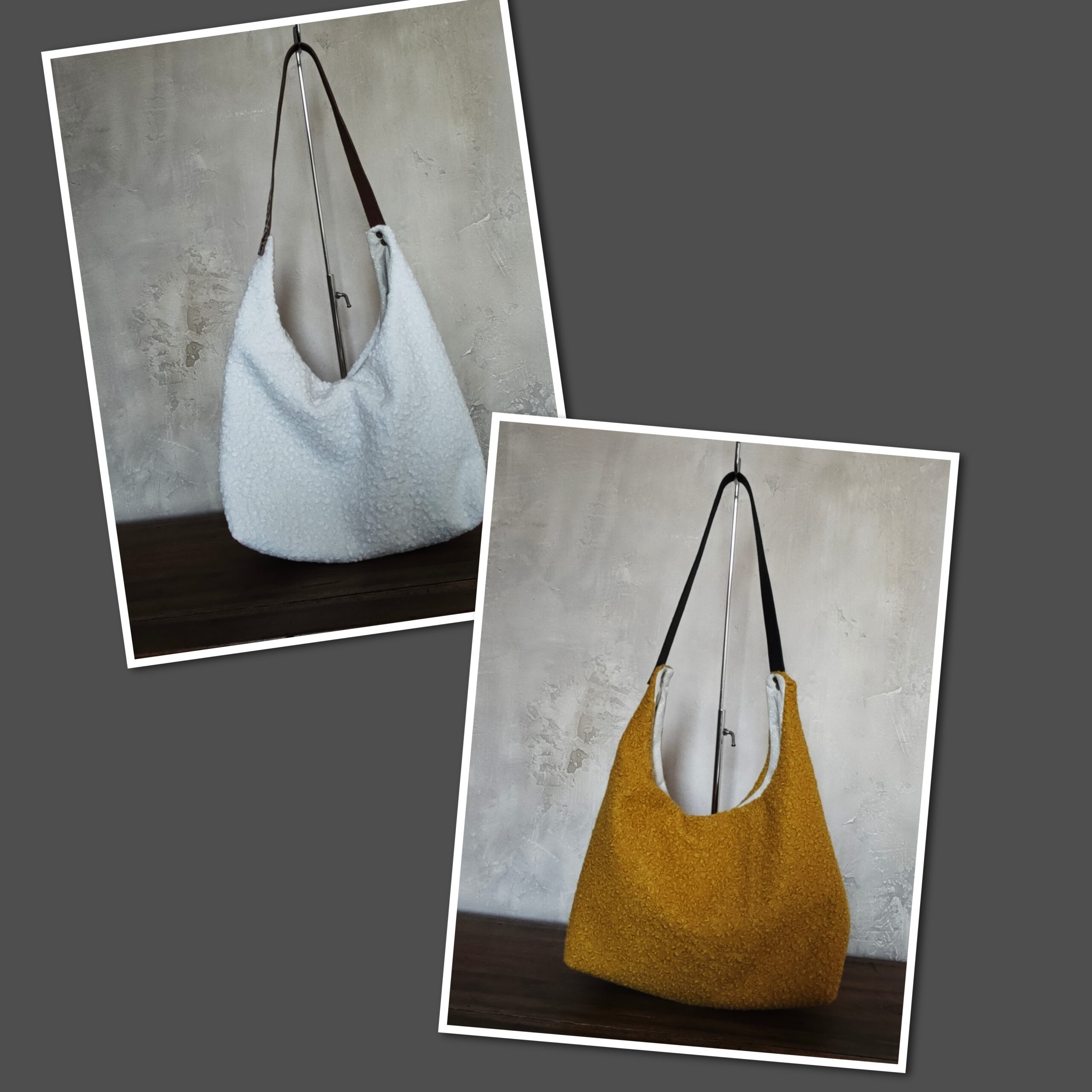 Sac porté épaule en laine bouillie moutarde ,